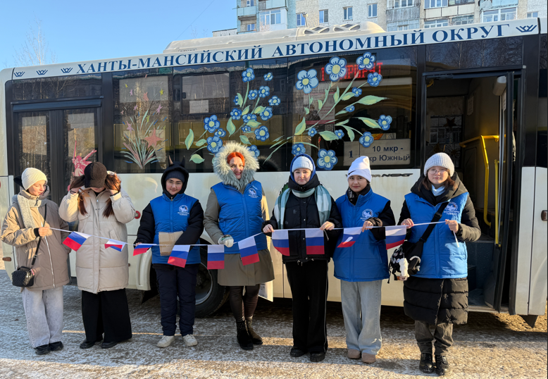 В Радужном Акция «Читающий автобус» «Победа помнит героев» была организована АУ ГМЦ«Вектор М». Волонтеры Победы поздравили пассажиров автобуса с праздником и раздали георгиевские ленты.
