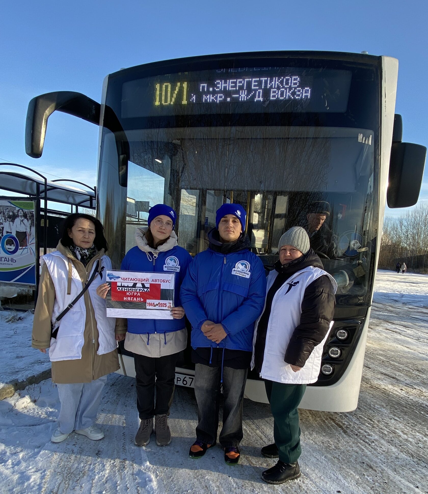 В «читающем автобусе» звучали стихи и отрывки из военных произведений, посвященных Великой Победе и освобождению Ленинграда от фашистской блокады. Периодически волонтеры включали аудиоролик с отрывками произведений авторов-фронтовиков, которые читали победители, призеры и номинанты Цифрового литературно-художественного конкурса чтецов Югры,проведенного АНО «ЦТЭД» совместно с Государственной библиотекой Югры.