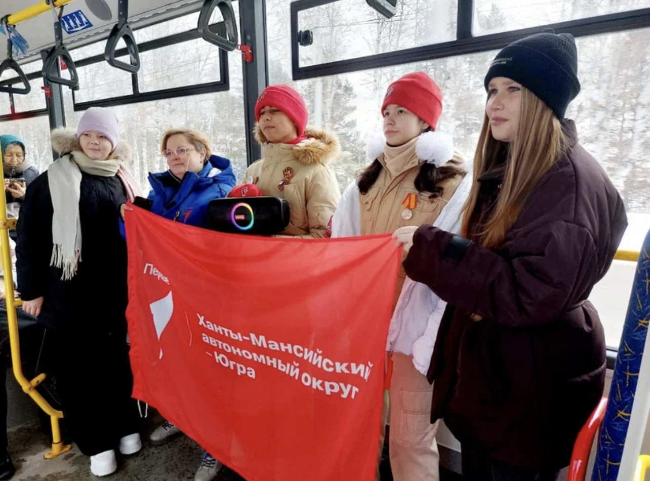 Они читали стихи военных лет, а также включали для пассажиров цифровой аудиоролик с декламацией художественного чтения отрывков из произведений авторов-фронтовиков победителями и призерами Цифрового литературно-художественного конкурса чтецов, который проводился АНО «ЦТЭД» совместно с Государственной библиотекой Югры.