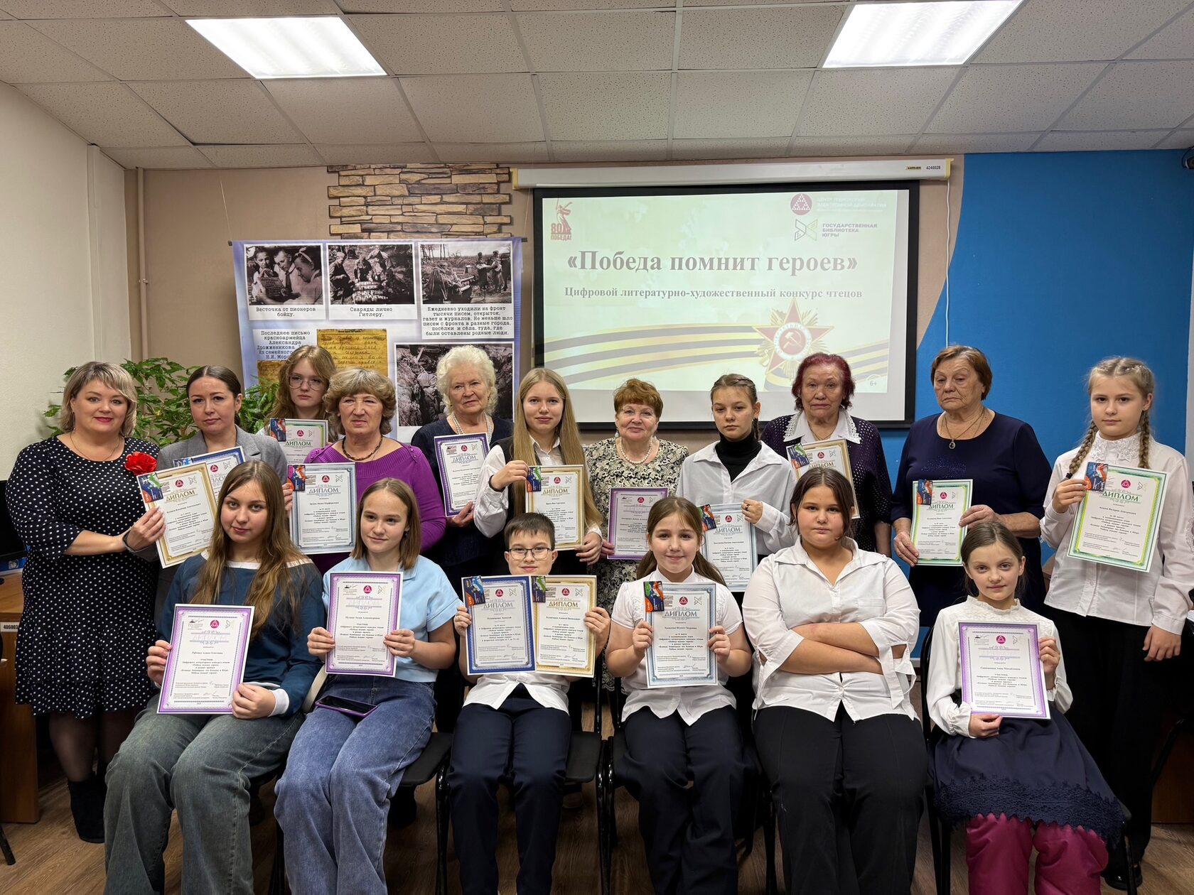 Организаторы сообщили: «Сегодня мы собрались в библиотеке, чтобы поздравить талантливых чтецов - победителей цифрового литературно художественного конкурса «Победа помнит героев».