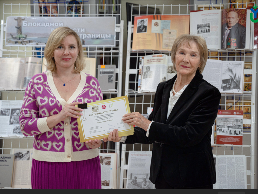 31 октября 2025 года в Югорском государственномуниверситете (ЮГУ) состоялось открытиевыставки «Блокадной вечности страницы». На мероприятие были приглашены эксперт Общественной палаты Югры, исполнительный директор АНО «Центр технологий электронной демократии» (АНО «ЦТЭД») Наталья Маслова и консультант Управления общего образования Департамента образования и науки Югры Наталья Евдокимова. Торжественное мероприятие проходило в Научной библиотеке ЮГУ. Инициаторами подготовки выставки стали руководитель Высшей школы гуманитарных наук Наталья Филимонова и директор Научной библиотеки Ирина Кузнецова, а ее созданию способствовало участие студентов ЮГУ вМеждународной Интернет-конференции «Блокада и оборона Ленинграда в художественной литературе, в письмах, документах, дневниках –2025».