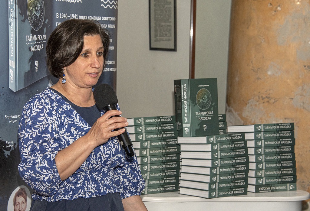 В ходе презентации автор книги провела небольшую экскурсию по музею Арктики и Антарктики: самые знаковые артефакты из «Таймырской находке» представлены на его первом этаже, в экспозиции «История исследования и освоения Северного морского пути». В своем выступлении Елена Окладникова отдельно поблагодарила Российский государственный музей Арктики и Антарктики и издателя монографии — просветительский и научно-исследовательский проект «Сохраненная культура» — за помощь и поддержку ее исследования. Рукопись книги была подготовлена в рамках работы над грантом № 01/2022 «Тайна островов Фаддея», предоставленным «Сохраненной культурой», а затем руководитель проекта Виктор Наумов издал монографию за счет своих личных средств. Но главное, о чем говорила Окладникова, это трагическая рассредоточенность и подчас абсолютно противоречивая трактовка предметов, найденных на Таймыре.