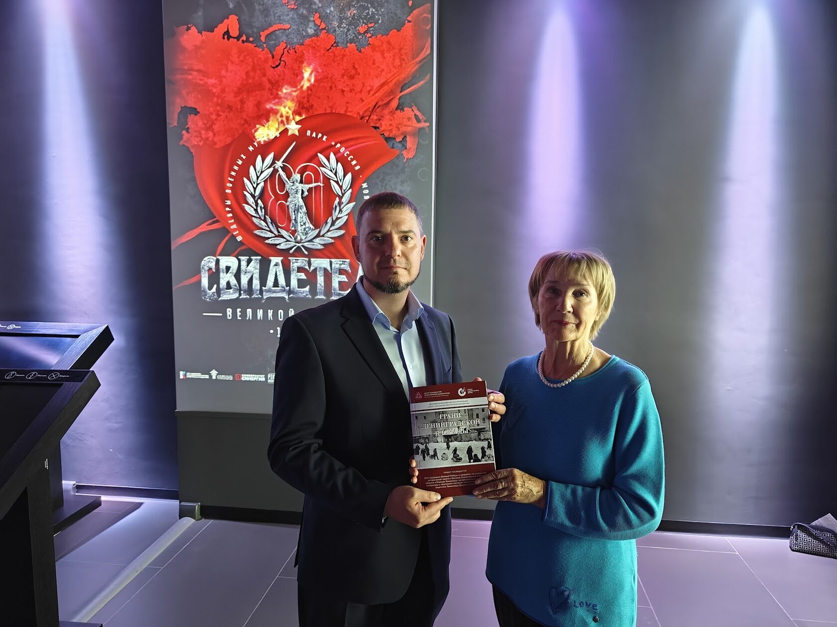 Наталья Маслова вручила Андрею Никитинупечатный сборник «Грани Ленинградской блокады», выпущенный по результатам этого проекта, и обсудила возможности участия исторического парка в Международной Интернет-конференции «Блокада и оборона Ленинграда в художественной литературе, в письмах, документах, дневниках - 2025».