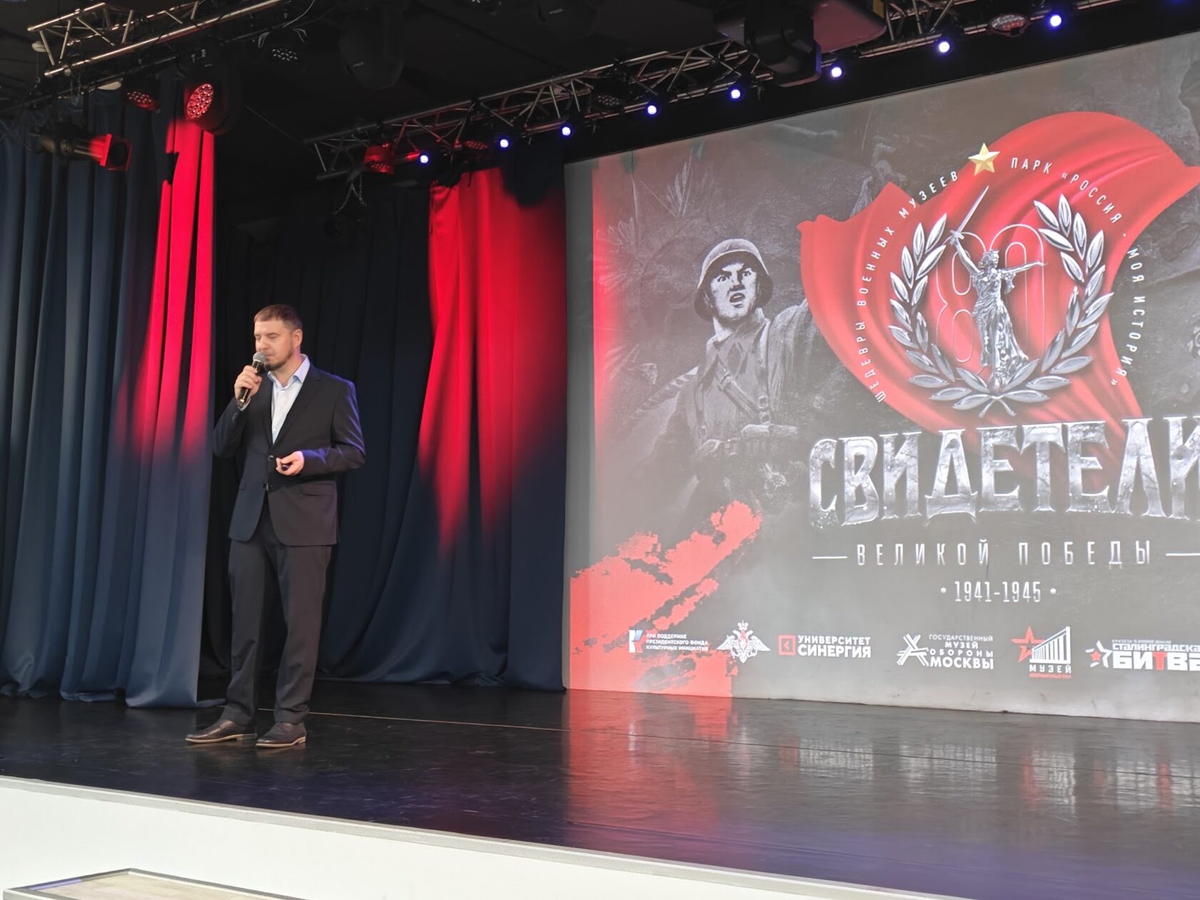 Затем Наталья Маслова приняла участие в торжественном открытии выставки «Свидетели Великой Победы», посвященной 80-летию Победы в Великой Отечественной войне, которое состоялось в Мультимедийном историческом парке.