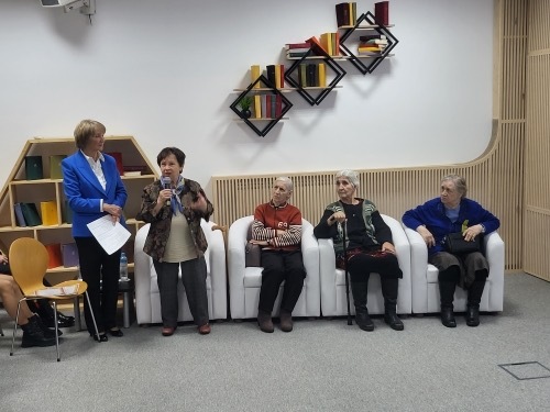Ведущая мероприятия передала слово ЕленеАркадьевне Цветковой, руководителю Библиотеки пос. Комарово (г. Санкт-Петербург), котораяотметила: «Даниил Александрович Гранин очень тепло относился к библиотекам и много лет былнашим читателем и другом, его всегда интересовало, что читает молодежь». Она поблагодарила организаторов за проведение очень интересных мероприятий в рамках проекта и зачитала приветствие от Марины ДанииловныЧернышевой-Граниной, руководителя Фонда сохранения и популяризации наследия Даниила Гранина, почетного председателя Оргкомитета проекта. В приветствии Марина Данииловна отметила: «Оказалось, что именно в Сибири активно помнят и читают писателей и поэтоввремен войны. И в этом, прежде всего, заслуга многих организаций Югры и общества блокадников Кыргыстана. Именно потомки участников войны и блокадников, эвакуированныев эти, казалось бы, далекие края, читают книги о войне, декламируют стихи Симонова, Гамзатова, Воронова, Семена Ботвинника. Мероприятия, которые проводятся Центром технологий электронной демократии совместно со многими организациями Югры, интересны как для молодежи, так и для взрослых. Например,«читающий автобус» позволяет людям по дороге на работу или домой слушать стихи и отрывки из произведений авторов-фронтовиков, подпевать песням военных лет. Очень важно, что в конкурсечтецов участвовали люди не только из Югры, но к ним присоединились и Казахстан, и Кыргызстан. У нас общая история, мы помним подвиги наших предков. Они всегда рядом. И за это мы благодарны организаторам и тем, кто читает стихи, вспоминает песни военных лет. Спасибо всем, за эту память!».